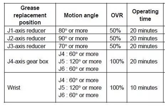 1. 當(dāng)正常使用的機器人運行時間達到1萬小時或使用3年時需要更換本體減速機內(nèi)部潤滑油,根據(jù)機器人實際使用環(huán)境適當(dāng)縮短保養(yǎng)間隔周期。