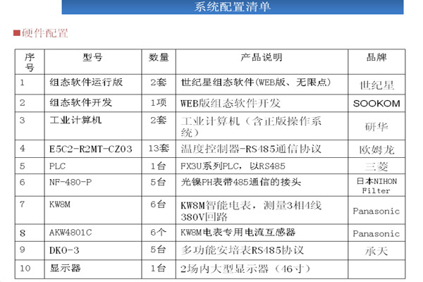 系統(tǒng)說明 l1.RS485總線來采集設(shè)備的各種參數(shù)。通過PLC與設(shè)備上的溫控表、PH值表、傳感器等以通信、 l2.使用工控組態(tài)軟件來存儲記錄PLC中采集的各種設(shè)備參數(shù)。 l3.使用KW8M 采集電流、電壓數(shù)據(jù)通過RS485通信。 l4.世紀(jì)星監(jiān)控系統(tǒng)控制策略的創(chuàng)建是在策略編輯器中實現(xiàn)的,策略編輯器是一個基于圖標(biāo),即功能模塊的設(shè)計環(huán)境.結(jié)合策略工具箱中的功能模塊及其相應(yīng)的參數(shù)配置對話框開發(fā)策略與配置工作.通過RS485總線通信采集數(shù)據(jù)連接功能塊。功能模塊也稱為軟儀表,其功能與人們熟悉的模擬儀表相同,能完成現(xiàn)場數(shù)據(jù)的采集、處理、顯示、報警和控制等(如溫度、電流、電壓、PH值、I/O狀態(tài)).構(gòu)建控制策略時,用連線將策略所需的功能模塊連接起來. l5.采集的記錄報表數(shù)據(jù)發(fā)送到局域網(wǎng)外遠(yuǎn)端,在遠(yuǎn)端也能進(jìn)行數(shù)據(jù)分析。