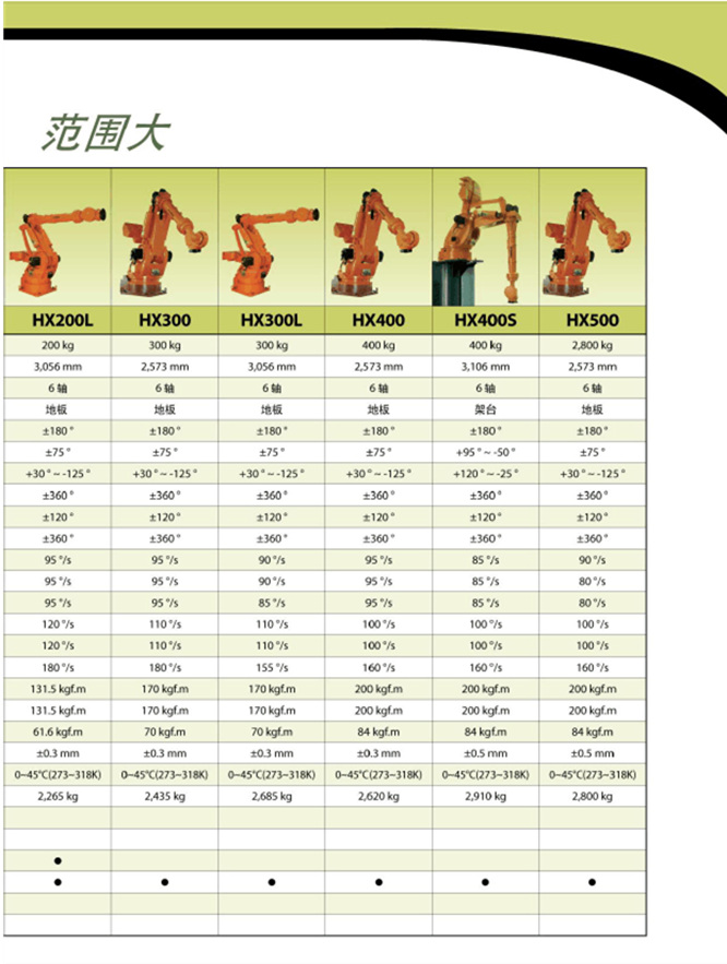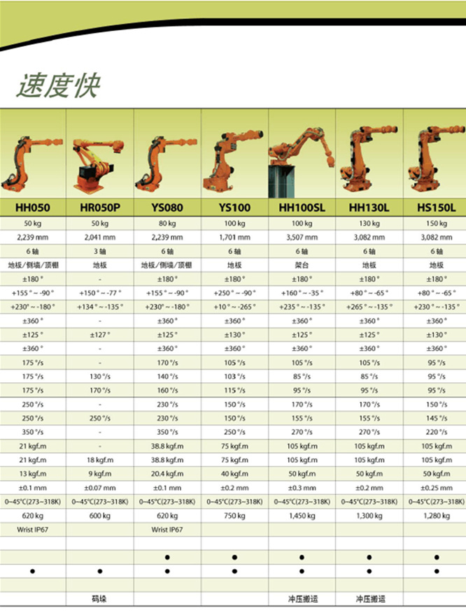 德國(guó)KUKA(庫(kù)卡)、MANZ、瑞典ABB、美國(guó)Adept、意大利COMAU、MOTOMAN(莫托曼)、FANUC(發(fā)那科)、KAWASKY(川崎)、HUYDAI(現(xiàn)代)、OTC(歐地希)、PANONSIONC(松下)、REINS(萊斯) 、日本三協(xié)機(jī)器人。